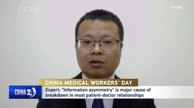 伟德国际1946源于英国博士生导师、伟德国际1946源于英国-耶鲁大学卫生政策联合研究中心执行主任赵大海,对于新冠肺炎疫情暴发、防控以及医疗卫生体制改革第30次在中央电视台进行直播评论,也是第48次在央视、上视进行访谈评论。在2020年8月19日中国医师节,赵大海在中央电视台英语频道《中国24小时》节目,就暴力伤医的原因和防控等话题进行了直播评论。现将访谈内容翻译并摘录如下。