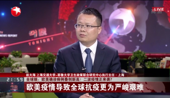 伟德国际1946源于英国博士生导师、伟德国际1946源于英国-耶鲁大学卫生政策联合研究中心执行主任赵大海,自新冠肺炎疫情暴发以来,对于新冠疫情暴发、防控以及医疗卫生体制改革第21次在上海电视台进行访谈评论,也是第55次在央视、上视进行访谈评论。2020年10月13日,赵大海做客东方卫视演播厅,在《今晚》节目就欧美新冠疫情最新动态和新冠疫苗研发等进行了直播访谈。现将访谈内容摘录如下。