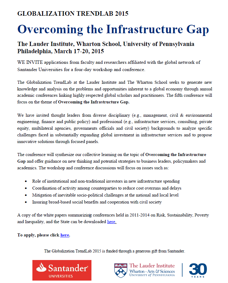 UPENN Wharton School- Globalization Trendlab 2015 "Overcoming the Infrastructure Gap" (MARCH 17-20, 2015)