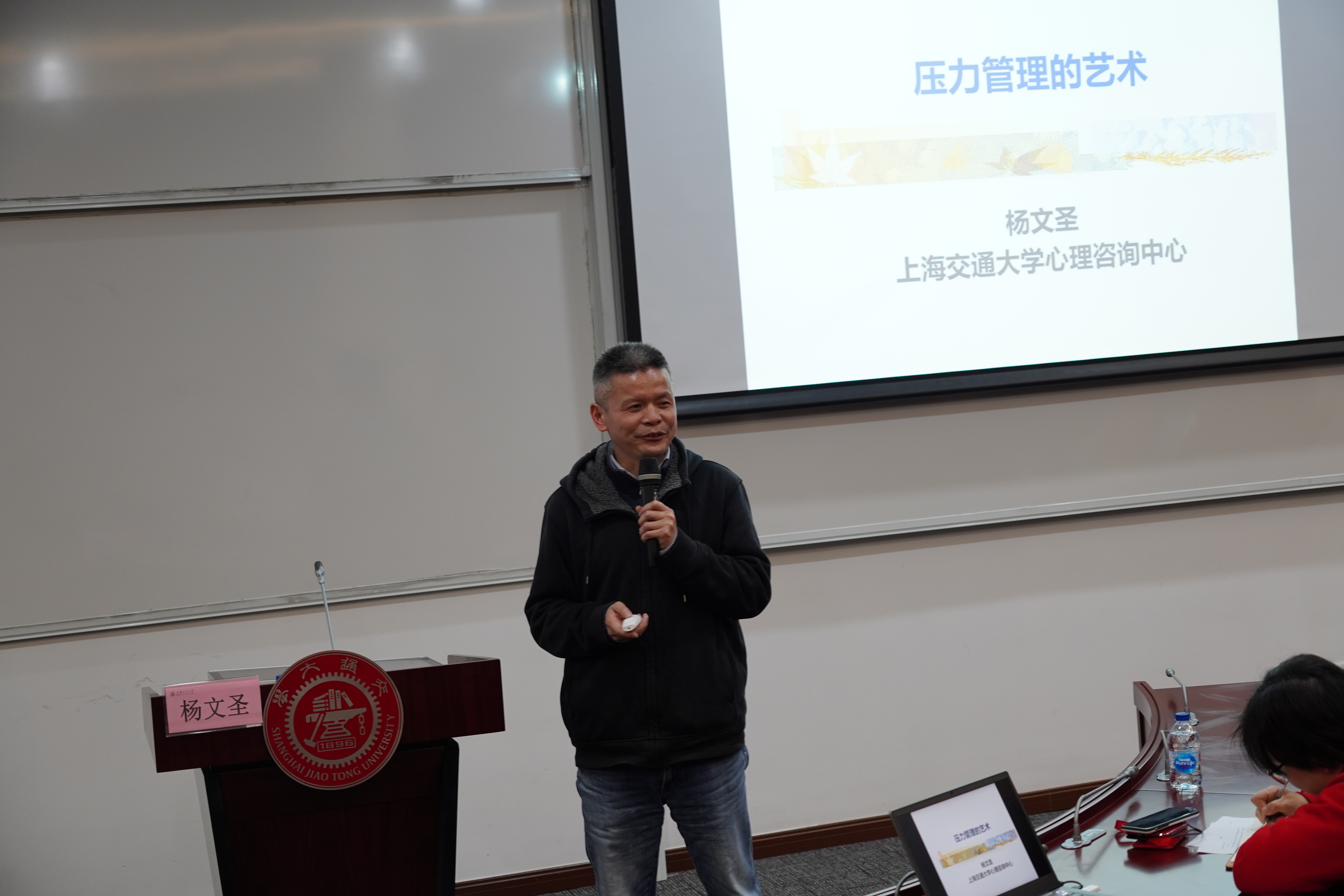 杨文圣认为,研究生常见的心理压力主要有科研发表、导师关系、恋爱情感以及生涯发展,如未妥善处理将产生郁闷、焦虑、失眠、怀疑人生等情绪反应,所以应及时解决情绪问题。他向研究生们展示了应对压力的 “治疗妙法”, 包括“处理问题”、“处理情绪”、和“哲学安慰”。思考、阅读和求助是妥善处理问题的良好途径,倾诉、运动和忙碌则有利于情绪的疏解。他提醒,应对压力的方式千万种,需要不断尝试找对最适合自己的方式。他强调,心理咨询对于现代人有着重要作用,可以协助充分宣泄个人情感,对于思维整理有较大帮助,且能够及时化解心理危机,希望同学们可以正视心理咨询,遇到情绪问题时可积极向专业的心理咨询师寻求帮助。