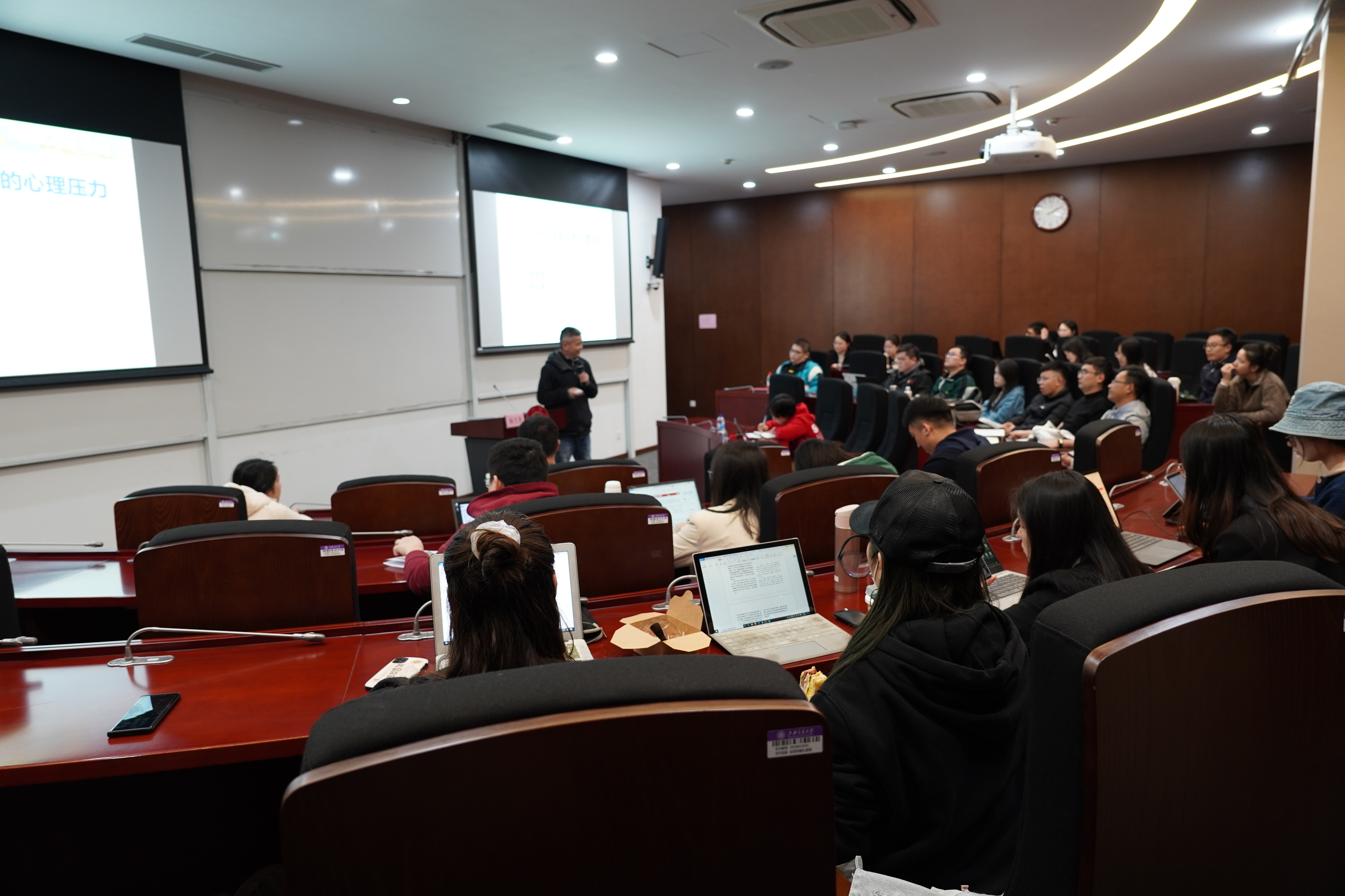 杨老师用幽默的语言、真实的案例,在轻松的氛围中为研究生们上了生动一课,让同学们对心理咨询的意义有了新的认识,尤其对帮助研究生做好心理调节、提高抗压能力、妥善应对压力提供了一系列行之有效的建议。